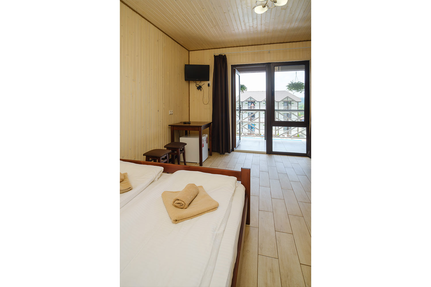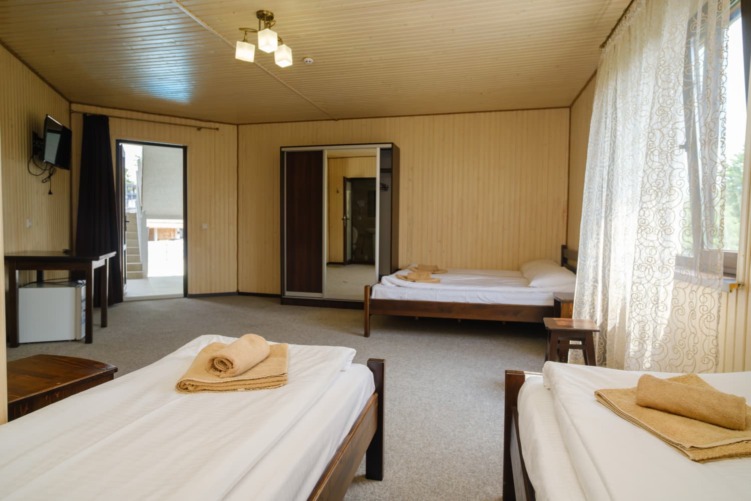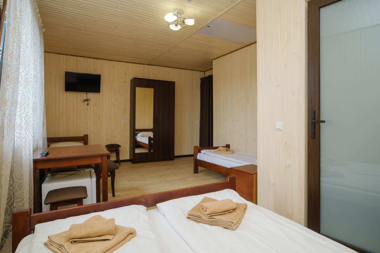 Затишний чотиримісний номер площею 30 кв.м, ідеально підійде для сімейного відпочинку, оснащений усім необхідним для комфортного відпочинку.