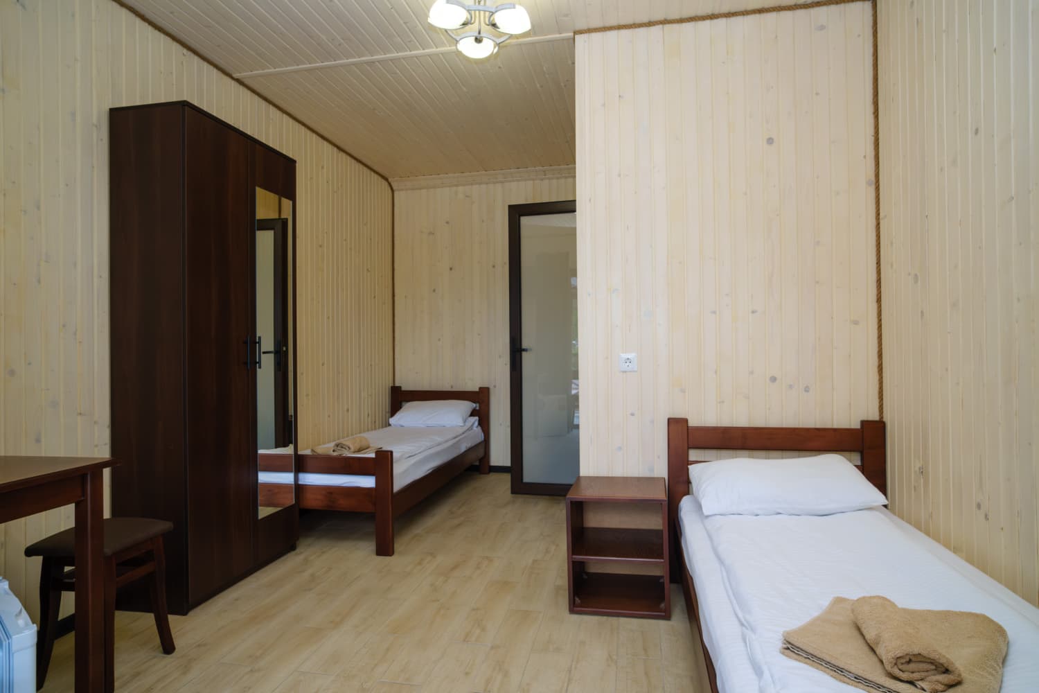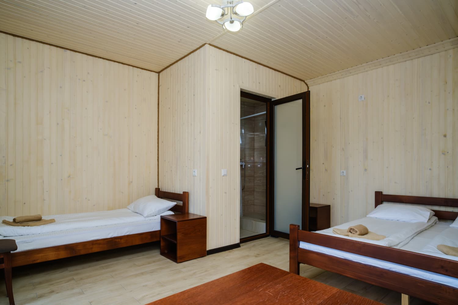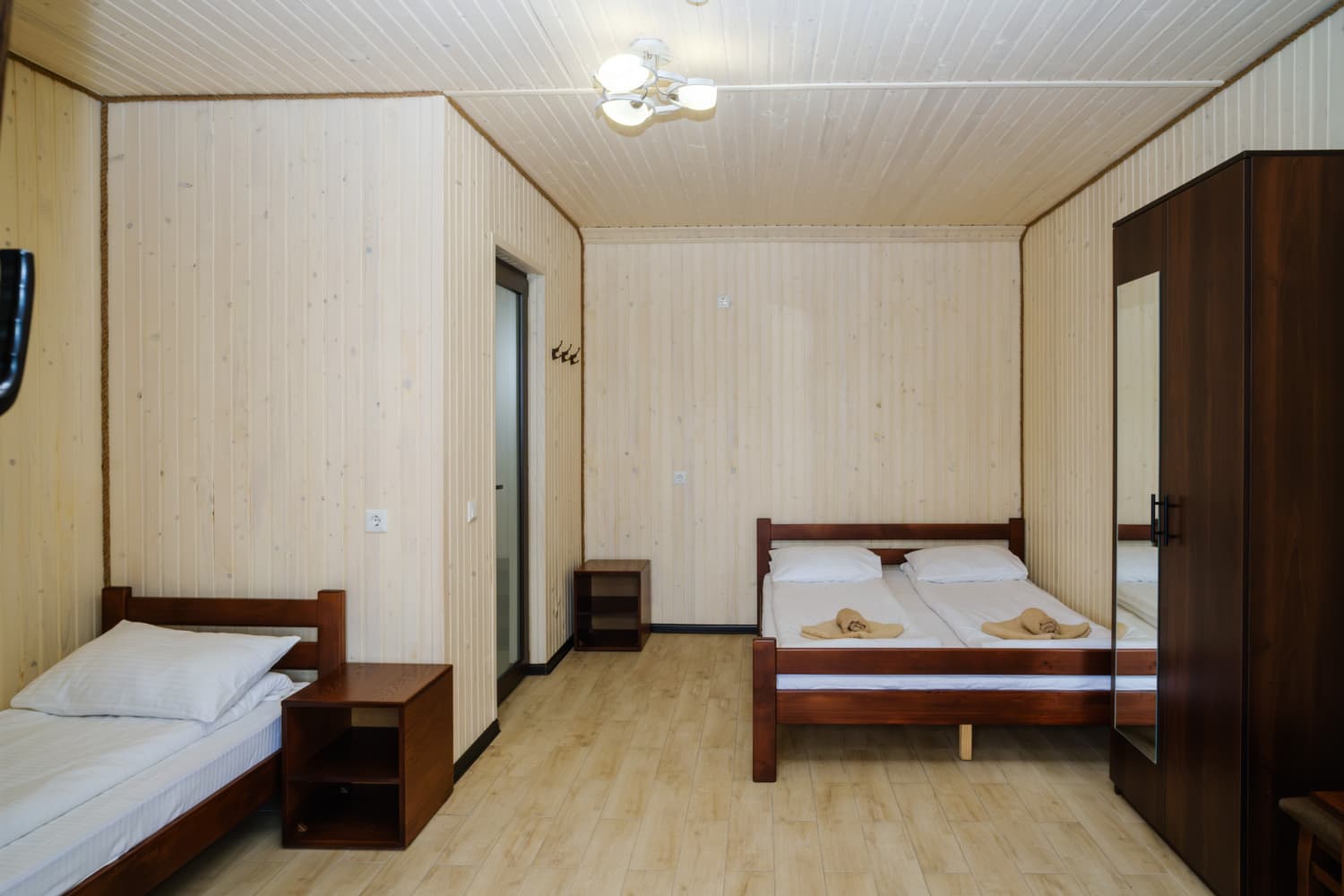 Затишний чотиримісний номер площею 30 кв.м, ідеально підійде для сімейного відпочинку, оснащений усім необхідним для комфортного відпочинку.